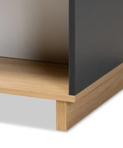 Baxton Studio Lilith Modern Two-Tone Black and Oak Brown Finished Wood and Metal 3-Tier Coffee Table