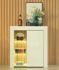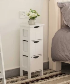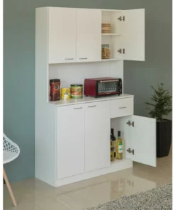 Basicwise White Standing Storage Corner Cabinet Organizer with 3 Open Shelf and Double Shutter Doors