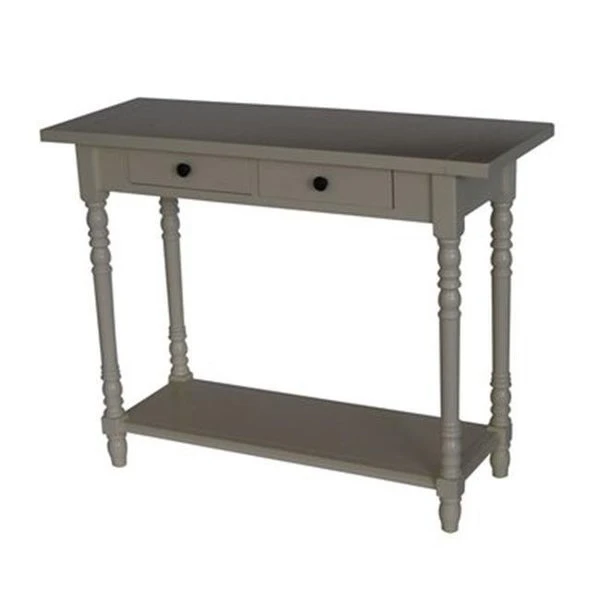 The Simplicity Entry Table is a welcome addition to help solve your storage needs.Made of solid wood and wood veneers this is the perfect foyer table for a smaller space.The drawer fronts are accented with two metal pull knobs.The hand crafted legs are sculpted with a decorative pattern all the way to the foot of the leg.The rectangle shaped top gives the table a finished look.This table is a great addition to any room in the house and also works great as a sofa table.Some assembly is required.Materials: Solid Wood/Wood Veneers.Width: 3 feet 13⁄4".Height: 291⁄2".Back To Front: 133⁄4".Finish: Buttermilk.