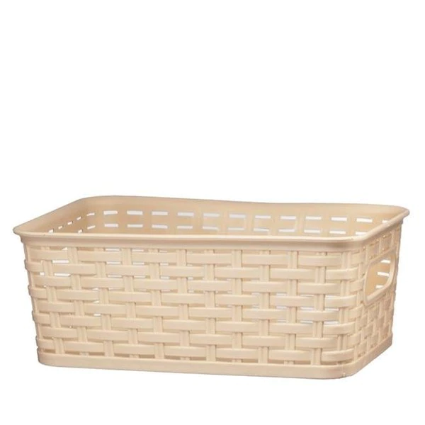 FeaturesSmall Rattan Storage BasketSpecificationsSize: 11.38 x 7.38 x 4.25"Color: Light BrownWeight: 1 lbs