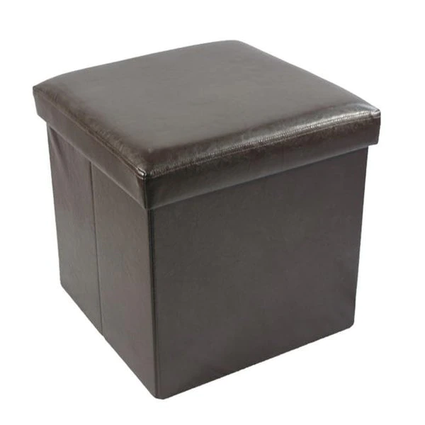 The Collapsible Ottoman is sure to please with its versatility. Provides comfort for tired feet or as an extra seat. Ideal for extra storage space to hide blankets. throw pillows or any sort of items in order to make the house look neat. Removable top provides instant storage while used as a footrest or a seat. For extra space its collapsible sides and bottom all neatly fit inside the top to store it under or behind your armchair or couch.Made of super soft Faux Leather in Black or Brown FeaturesCollapsible Storage OttomanSpecificationsColor: BrownDimension: 15 x 15 x 15 in.Weight: 6 lbs