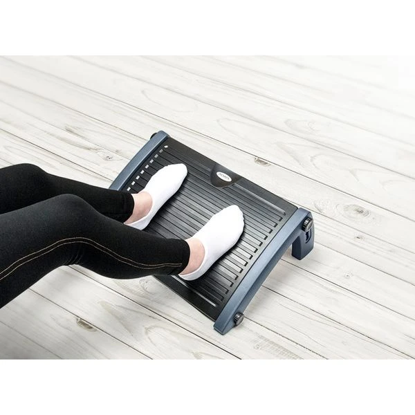 The Aidata Footrest is ergonomically designed to help maintain correct posture and reduce strain and fatigue while sitting. 4 fixed height/angle adjustments ranging from 10-25° elevate the feet to reduce pressure on the legs, which improves circulation and eases stress on your neck and back. A large foot platform measuring 17.8” x 13.6” ensures both feet can remain comfortably flat and spaced. The high-impact plastic construction and rubber no-skid grips keep the entire footrest sturdy and in place during use. The Aidata footrest is the perfect accessory to keep your feet comfortably supported while reducing the risk of injury or other health issues caused by bad posture!