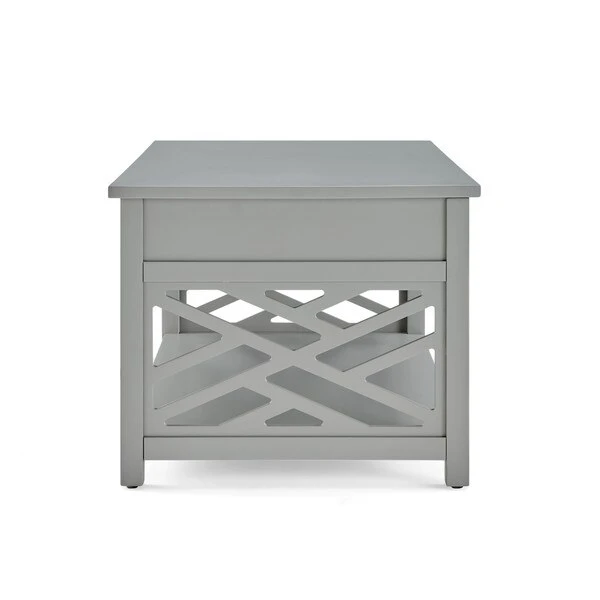 Coventry is a fresh, clean collection that is versatile in any space. The square pattern, open-detailing on each side is airy and offers a unique look for your décor. Each piece offers additional storage or display space with a shelf, drawer, or pull out tray shelf. In both dove gray and white, these pieces are the perfect compliment to your space.