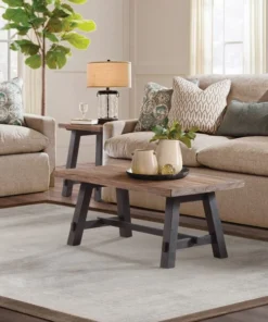 Add a unique touch to your home with this collection The lightly distressed black sawhorse leg design gives it a rustic, yet industrial feel. The solid wood top has a natural finish that features unique markings from the wood grain. This collection is sure to make a statement in your home. Made of solid wood.