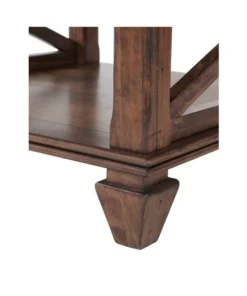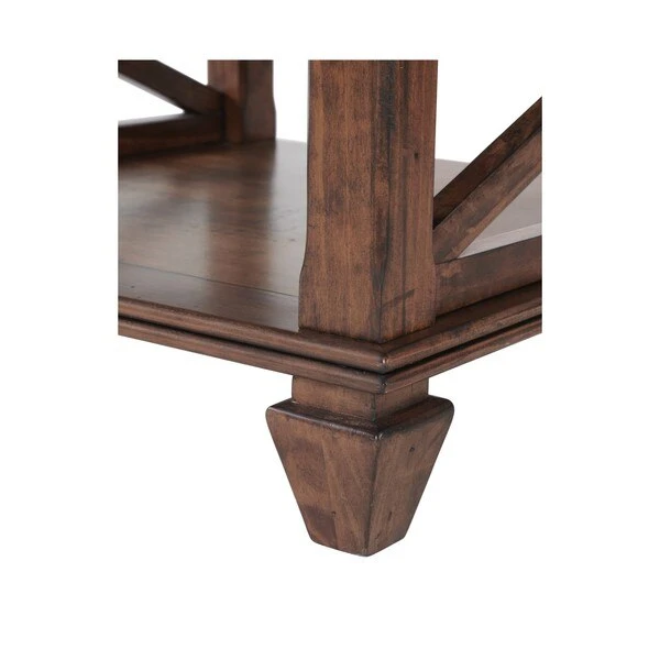 This classic collection is rich in character. The open side panels give a relaxed feel to these timeless pieces. Made of pine wood and finished in a distressed cherry stain that brings warmth to your living space. This gorgeous coffee table with shelf will be a perfect accent next to your sofa