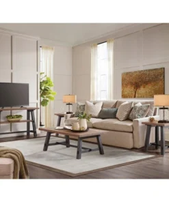 Alaterre Furniture Adam 4-Piece Solid Wood Living Room Set, Overall Length: 16