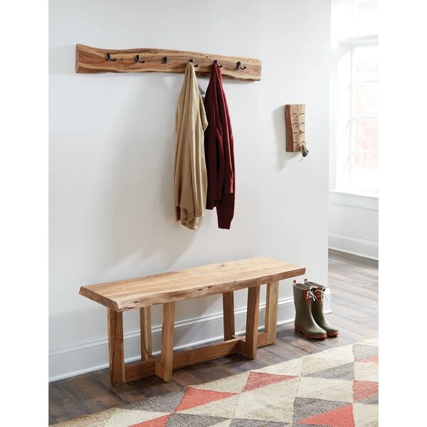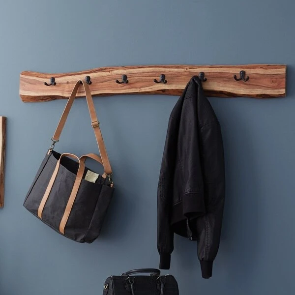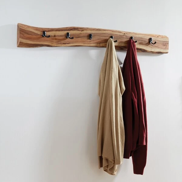 Alpine Live Edge Coat Hooks are uniquely yours; style your entryway, living room or bedroom with this gorgeous natural Acacia wood coat hook. The live edge shape will vary on every piece due to the unique features of the natural wood. No piece is exactly alike, the subtle imperfections such as knots and cracks are part of the wood's character. A clear natural finish enhances the beautiful features in each piece of solid acacia wood.