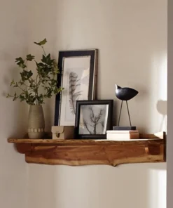 Alpine Live Edge mantel shelves are uniquely yours; style your entryway, living room or bedroom with this gorgeous natural Acacia wood mantel. The live edge shape will vary on every piece due to the unique features of the natural wood. No piece is exactly alike, the subtle imperfections such as knots and cracks are part of the wood's character. A clear natural finish enhances the beautiful features in each piece of solid acacia wood.