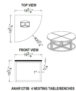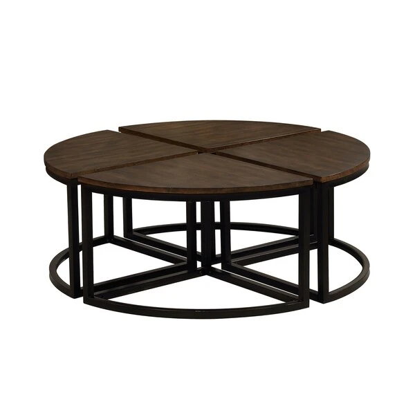 Alaterre Furniture Arcadia Acacia Wood Set of 4 Round Wedge Tables, Antiqued Mocha