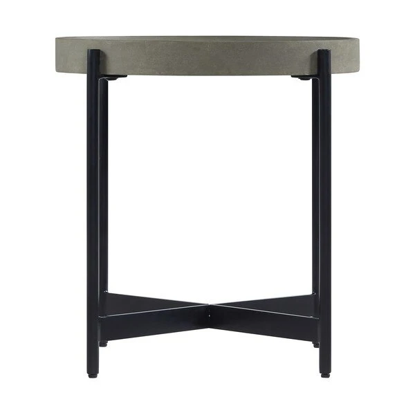 The simplistic design is both chic and functional. The end table offers modern, industrial concrete-coated table tops that will give a fresh new look to your living room. Features a tray top design that is fixed in place on a sturdy X-frame metal base. This end table beautifully marries form and function and fits perfectly in a living room, family room, or office area without crowding a space or sacrificing style.