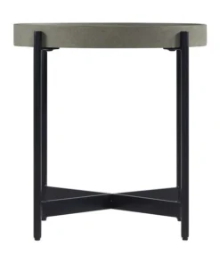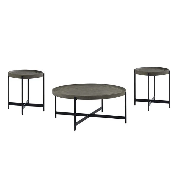 The simplistic design is both chic and functional. The mix of materials give this collection a rustic industrial feel that is sure bring character to your living space. Features solid wood tray tops that are fixed in place on a metal base. This round coffee table provides an ideal spot to place your books, magazines, beverage or snacks while entertaining in the living room. The end tables beautifully marry form and function and fit perfectly in a living room, family room, or office area without crowding a space or sacrificing style.