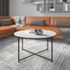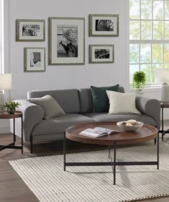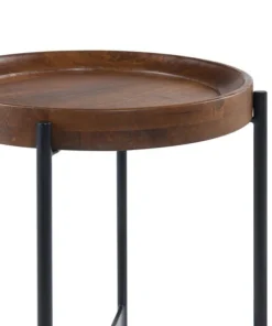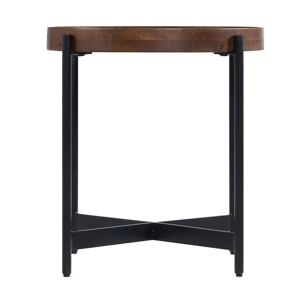 The simplistic design is both chic and functional. The mix of materials give this collection a rustic industrial feel that is sure to bring character to your living space. Features solid wood tray tops that are fixed in place on a metal base. This round coffee table provides an ideal spot to place your books, magazines, beverage or snacks while entertaining in the living room. The end tables will look perfect next to your favorite chair or sofa and is the ideal spot for a lamp, home decor, or fresh flowers.