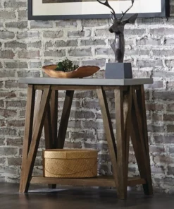Decorate your living space with this new innovative collection. Modern, industrial Concrete-coated-topped tables with solid wood base and shelf will offer a fresh new look to your living room. We see this collection in a modern city loft or a transitional living room that needs just a pop of updated style. Sleek and clean, these pieces combine both style and functionality.