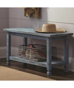 Alaterre Furniture Country Cottage Bench, Blue Antique Finish