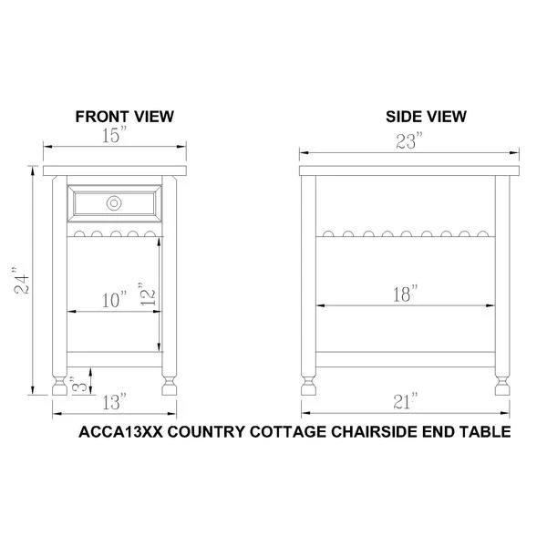 Country cottage collection will be a charming addition to your home's décor. With its detailed dental work, square legs and distressed wood construction each piece will be a unique accent in your living space. The multiple color options will blend into any space.