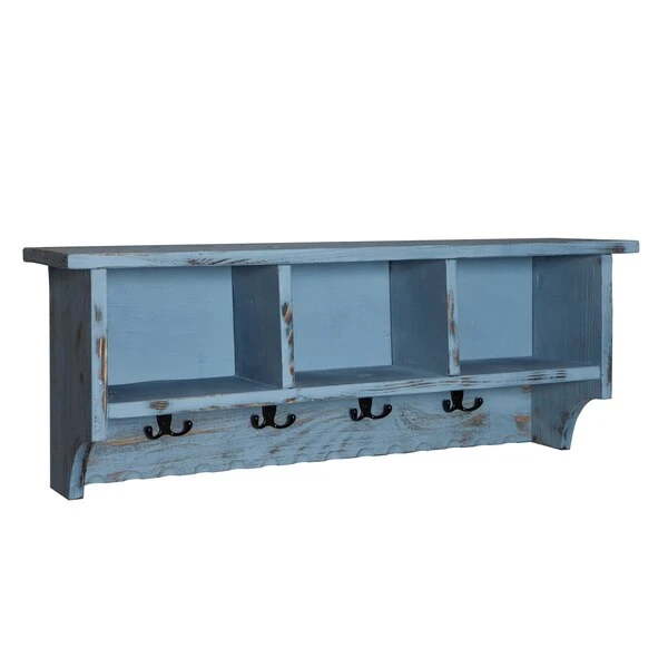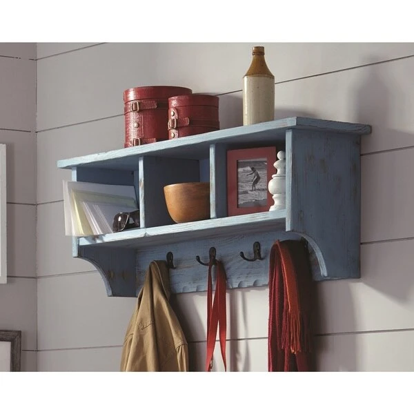 Alaterre Furniture Country Cottage Coat Hook with Storage Cubbies, Blue Antique Finish