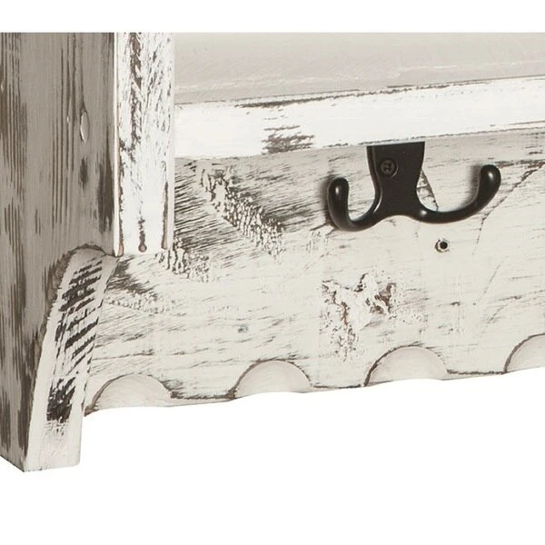 Alaterre Furniture Country Cottage Coat Hooks with Storage Cubbies, White Antique Finish