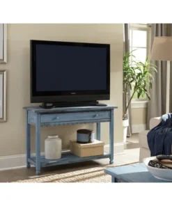 Alaterre Furniture Country Cottage Media/Console Table, Blue Antique Finish