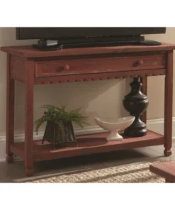 Alaterre Furniture Country Cottage Media/Console Table, Red Antique Finish