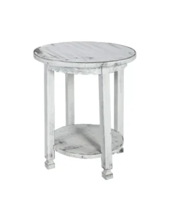 Alaterre Furniture Country Cottage Round End Table, White Antique Finish