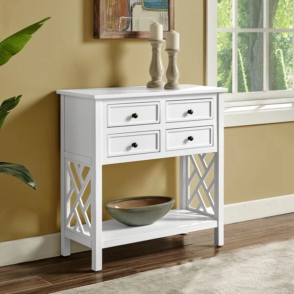 A fresh, clean collection that is versatile in any space. The open-detailing on each side is airy and offers a unique look for your décor.