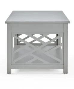 Coventry is a fresh, clean collection that is versatile in any space. The square pattern, open-detailing on each side is airy and offers a unique look for your décor. Each piece offers additional storage or display space with a shelf, drawer, or pull out tray shelf. In both dove gray and white, these pieces are the perfect compliment to your space.