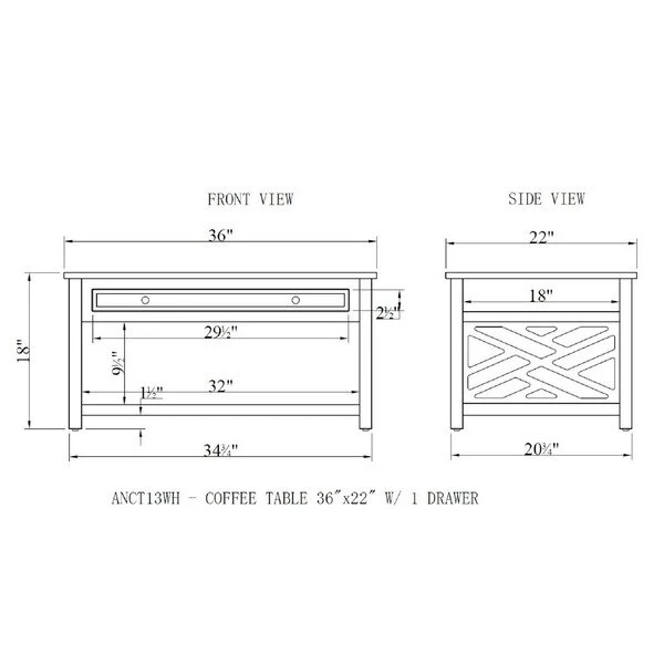 Alaterre Furniture #ANCT01114WH Specifications