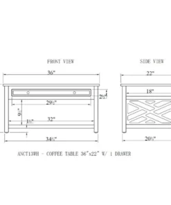 Alaterre Furniture Coventry 36" Coffee Table, End Table and Console/TV Table with Drawers, Length: 22