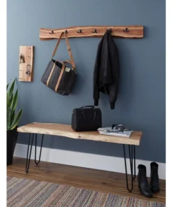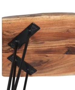 Mid-century meets Modern Industrial with these Natural Live Edge table tops and hairpin metal legs. Each tabletop is unique; no two tops will be exactly alike. Constructed of natural acacia wood. Each of our live edge products includes nylon floor protectors. The knots and cracks add to the wood's character. A clear natural finish enhances the beautiful features in each piece of wood.