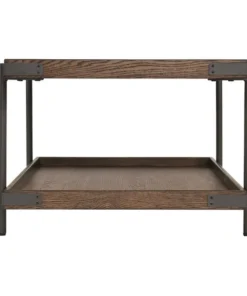 A perfect blend of rustic and industrial style, this beautiful collection will blend seamlessly in your living space. Featuring solid wood tray tops that are fixed in place with metal accents and metal legs. This set of five is sure to enhance your living room style; one coffee table, 2 side tables, one sofa/console table and bar chart complete the look. Mix and match to achieve your desired look.
