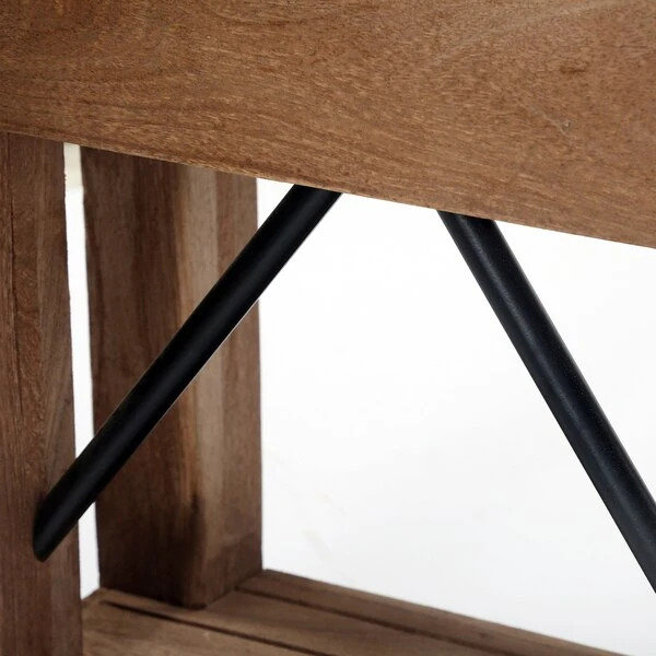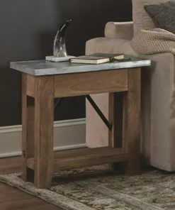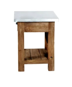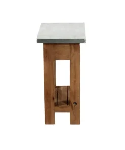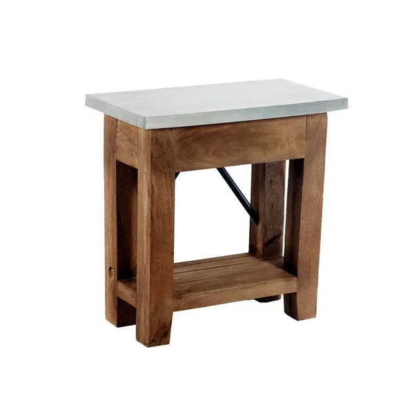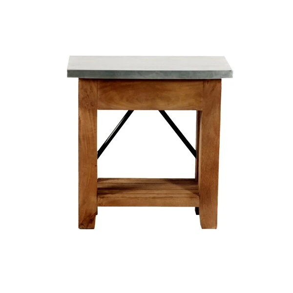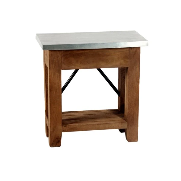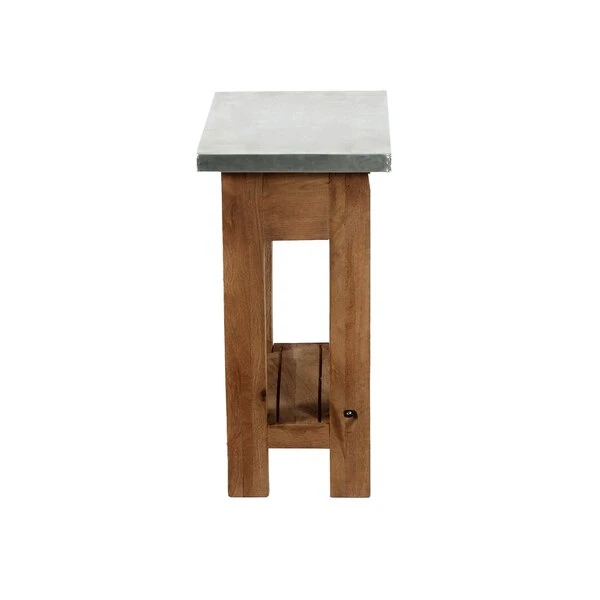 Zinc Metal mixed with Wood and Metal Accents lends Modern Industrial style to your living space. This table offer a balance of sturdy and solid with the lightness of the zinc metal tops; the cross bar accent in the back offers a unique touch. Roomy shelf provide the perfect spot for magazines or a faux plant. These accent tables provide both style and functionality.