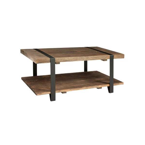 Featuring exquisite workmanship of solid wood tops with wrapped metal strap and metal legs, the Modesto collection furniture will last for years to come. The reclaimed wood finish highlights the cracks, knots, and wood grain that is unique to each piece. Modesto Coffee Table has a rustic and natural style; measuring 42 inches in width it provides plenty of space for your decorating needs. Its solid, reclaimed wood tops and strong metal legs make a statement in your living space.