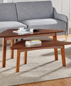 Dare we say these tables are a modern take on mid-century modern design? With their tapered legs and warm chestnut finish you will have the perfect accent to update your living space. These two uniquely triangular nesting tables will have your friends think they have stepped onto a movie set with how stunning they are.