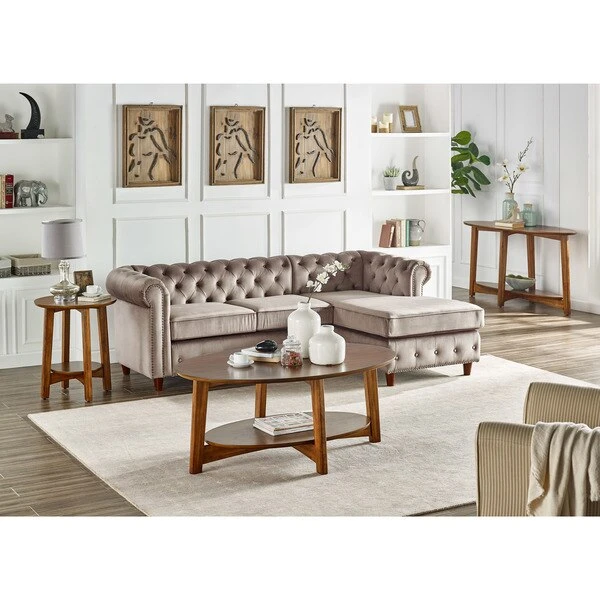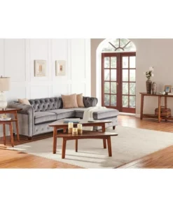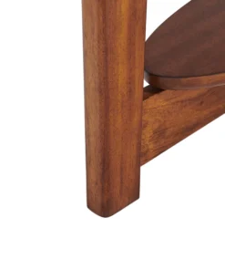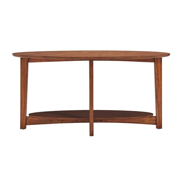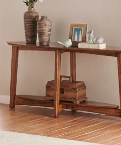 Dare we say these tables are a modern take on mid-century modern design? With their tapered legs and warm chestnut finish you will have the perfect accent to update your living space. Oval-shaped console table with floating shelf is a gorgeous accent as an entryway table, behind your sofa or possibly even for a flat-screen television.