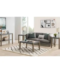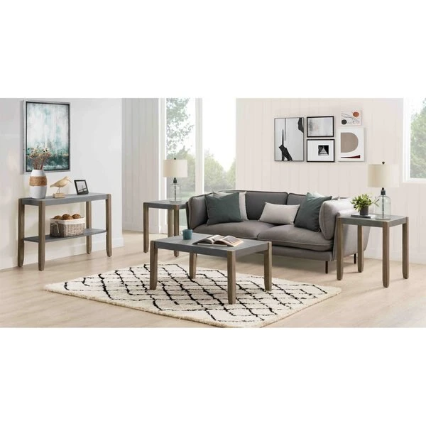 Alaterre Furniture Newport 4-Piece Faux Concrete and Wood Living Room Set