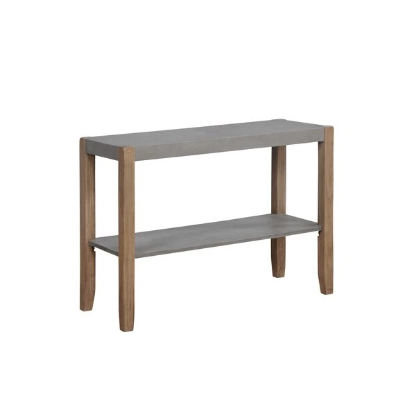 Clean lines and mixed materials are hallmarks of this rustic industrial furniture collection. Set of four tables has your family room style perfected; two end tables, one coffee table and a console/tv stand to finish the look. The faux concrete with the square wood legs blend seamlessly. This collection allows you to affordably update your spaces to a very stylish look. Mix and match to achieve your desired look.