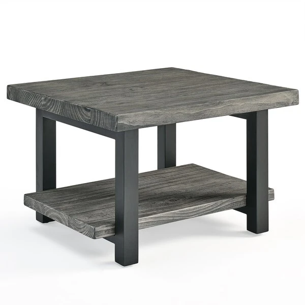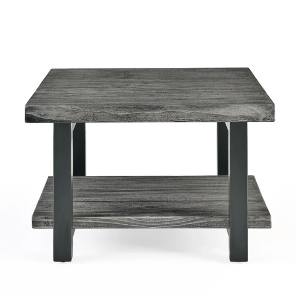 The Pomona collection features the exquisite workmanship of a solid wood top with metal legs that will last for years to come. Each piece is constructed of solid pine wood and finished to have the appearance of reclaimed wood. The reclaimed wood finish highlights natural wood variations such as cracks and knots which add to the piece's character. Any item in this collection will add to the rustic industrial style of any space. Pomona square Coffee Table is the perfect size for your living room or family room. The bottom shelf offers additional space for storage or knick-knacks. Its solid Pine wood tops look like reclaimed wood. Knots, cracks and imperfections add to the character of your piece. Strong, powder-coated steel legs make a statement in your living space.