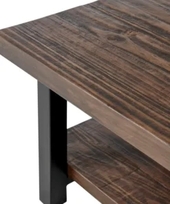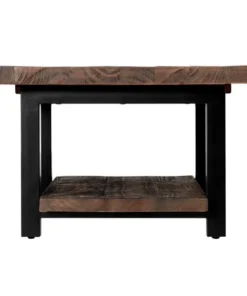 The Pomona collection features the exquisite workmanship of a solid wood top with metal legs that will last for years to come. Each piece is constructed of solid pine wood and finished to have the appearance of reclaimed wood. The reclaimed wood finish highlights natural wood variations such as cracks and knots which add to the piece's character. Any item in this collection will add to the rustic industrial style of any space. Pomona square Coffee Table is the perfect size for your living room or family room. The bottom shelf offers additional space for storage or knick-knacks.