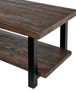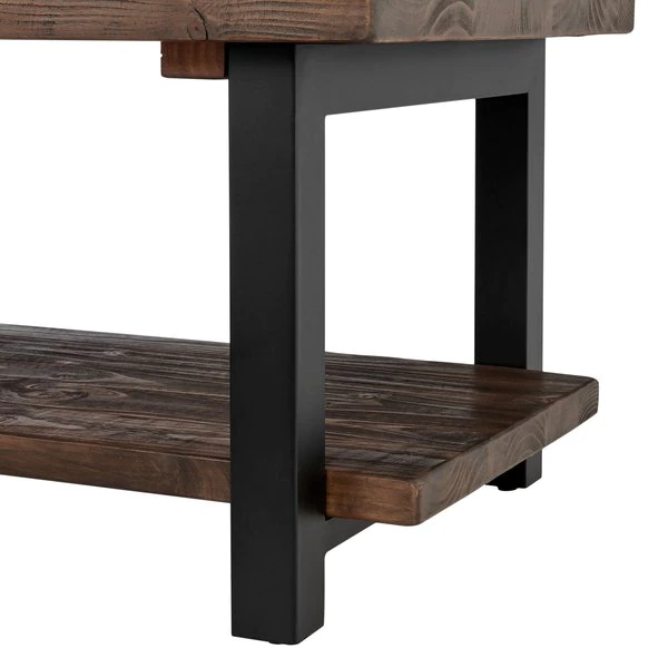 The Pomona collection features the exquisite workmanship of a solid wood top with metal legs that will last for years to come. Each piece is constructed of solid pine wood and finished to have the appearance of reclaimed wood. The reclaimed wood finish highlights natural wood variations such as cracks and knots which add to the piece's character. Any item in this collection will add to the rustic industrial style of any space. Pomona Coffee Table has a rustic and natural style; measuring 42 inches in width it provides plenty of space for your decorating needs. Its solid pine wood tops look like reclaimed wood. Knots, cracks and imperfections add to the character of your piece. Strong, powder-coated steel legs make a statement in your living space.