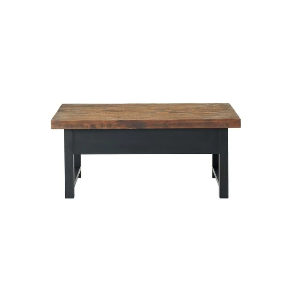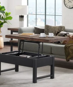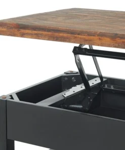 The Pomona collection features the exquisite workmanship of a solid wood top with metal legs that will last for years to come. Each piece is constructed of solid pine wood and finished to have the appearance of reclaimed wood. The reclaimed wood finish highlights natural wood variations such as cracks and knots which add to the piece's character. This coffee table with a lift top offers a spacious top surface that lifts up and towards you to create a versatile surface that allows you to work on projects, browse on your laptop, or enjoy a snack all while relaxing from the comfort of your own couch. Any item in this collection will add to the rustic industrial style of any space.