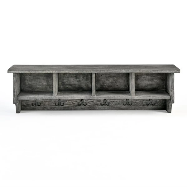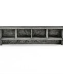 The Pomona collection features the exquisite workmanship of a solid wood top with metal legs that will last for years to come. Each piece is constructed of solid pine wood and finished to have the appearance of reclaimed wood. The reclaimed wood finish highlights natural wood variations such as cracks and knots which add to the piece's character. Any item in this collection will add to the rustic industrial style of any space. 48" Coat Hook has a rustic, modern style. Extremely versatile for your entryway, hall, laundry or guest room. The cubbies allow you to store hats, gloves, etc. and the hooks are strong enough for jackets and packs.
