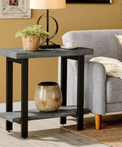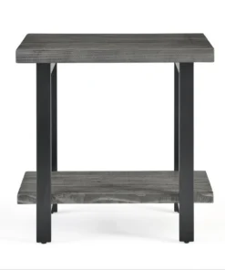 The Pomona collection features the exquisite workmanship of a solid wood top with metal legs that will last for years to come. Each piece is constructed of solid pine wood and finished to have the appearance of reclaimed wood. The reclaimed wood finish highlights natural wood variations such as cracks and knots which add to the piece's character. Any item in this collection will add to the rustic industrial style of any space. Pomona 2-tier end table will add warmth to any décor. The Slate Gray finish and design provide a stylish element to your room. Add your favorite lamp, books, magazines, or knick knack to complete your decorating style.