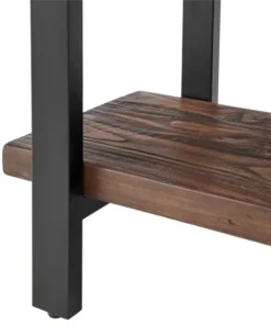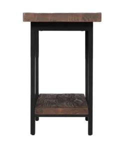 The Pomona collection features the exquisite workmanship of a solid wood top with metal legs that will last for years to come. Each piece is constructed of solid pine wood and finished to have the appearance of reclaimed wood. The reclaimed wood finish highlights natural wood variations such as cracks and knots which add to the piece's character. Any item in this collection will add to the rustic industrial style of any space. Pomona 2-tier end table will add warmth to any décor. The rustic natural finish and design provide a stylish element to your room. Add your favorite lamp, books, magazines, or knick knack to complete your decorating style.