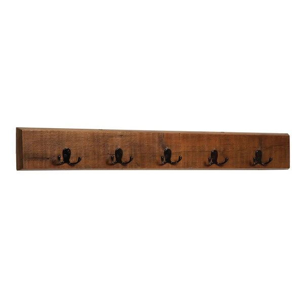 Revive Collection of reclaimed wood furniture features handcrafted design and a reduced impact on the environment. Reclaimed wood wears its history proudly and is long lasting. The lacquer finish allows each piece to show its natural wood knots, cracks, and grain. Beautiful detailing in the wood is a surprising feature. This coat hook features 4 double hooks provide plenty of space to hang jackets, coats, or bags.