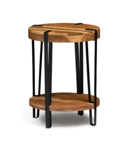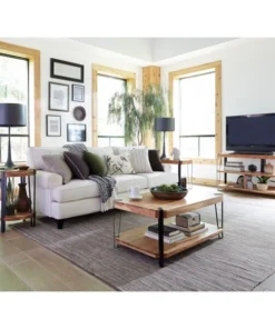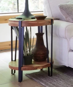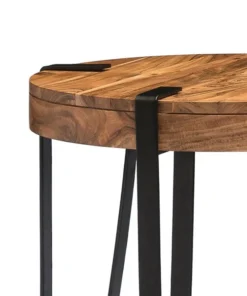 Industrial-styled Ryegate features solid wood tops with wood veneers. These tables make a strong industrial modern statement in your living space. Each tabletop is unique; no two tops will be exactly alike. Constructed of natural acacia wood. Each of our live edge products includes nylon floor protectors. The knots and cracks add to the wood's character. A clear natural finish enhances the beautiful features in each piece of wood.