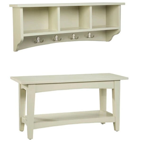Shaker Cottage Bench and Storage Coat Hook set can be used in the mud room, entryway or anywhere you need a bit more organization. Sit on the bench to put on or remove your shoes; store your keys, gloves and more in the storage hook's cubbies. Eight hooks for all your coats and accessories. The coat hook is fully assembled and includes a French cleat for easy hanging; the bench is sturdy and easy to assemble.