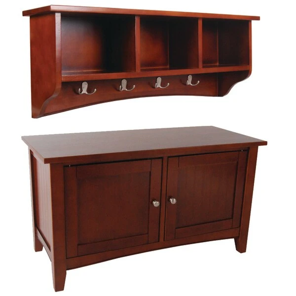 Alaterre Furniture Shaker Cottage Storage Coat Hook with Cabinet Bench Set, Cherry