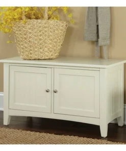 Alaterre Furniture Shaker Cottage Tray Shelf Coat Hook with Cabinet Bench, Ivory
