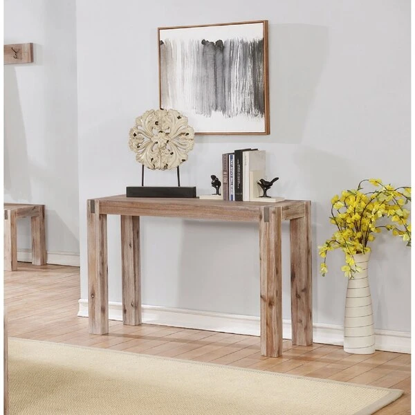 Woodstock collection has timeless appeal; this collection has simple lines with metal inset detail. Its Brushed Driftwood finish melds easily with many décor styles. Consider this an updated classic and choose your favorite blend of accent, coffee and media tables. A bench can add extra seating or pair with coat hook for a stunning entryway statement.
