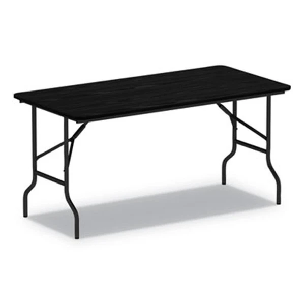 FeaturesLocks for easy storageScratch-resistant melamine topGravity leg-locking mechanism1" diameter steel legs with plastic foot capsVinyl edgingTop supports up to 1.200 lbs evenly distributedSpecificationsBase Color: BlackBase / Leg Material: SteelTop Material: MelamineTop Shape: RectangularSize: 48 x 24"Weight: 39 lbs